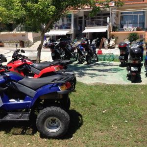 Rent a ATV in Thassos and enjoy the unforgettable ride with this 4-wheel all-terrain motorbike. This popular four wheeler provides improved stability at slower speeds and is perfect for exploring beautiful beaches of the Thasso's seashore. ATVs are very easy to operate even for inexperienced drivers.